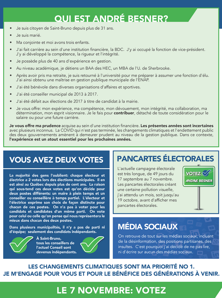 Les priorités et les engagementsd'André Besner, candidat à la mairieinnovationbesner@sympatico.ca