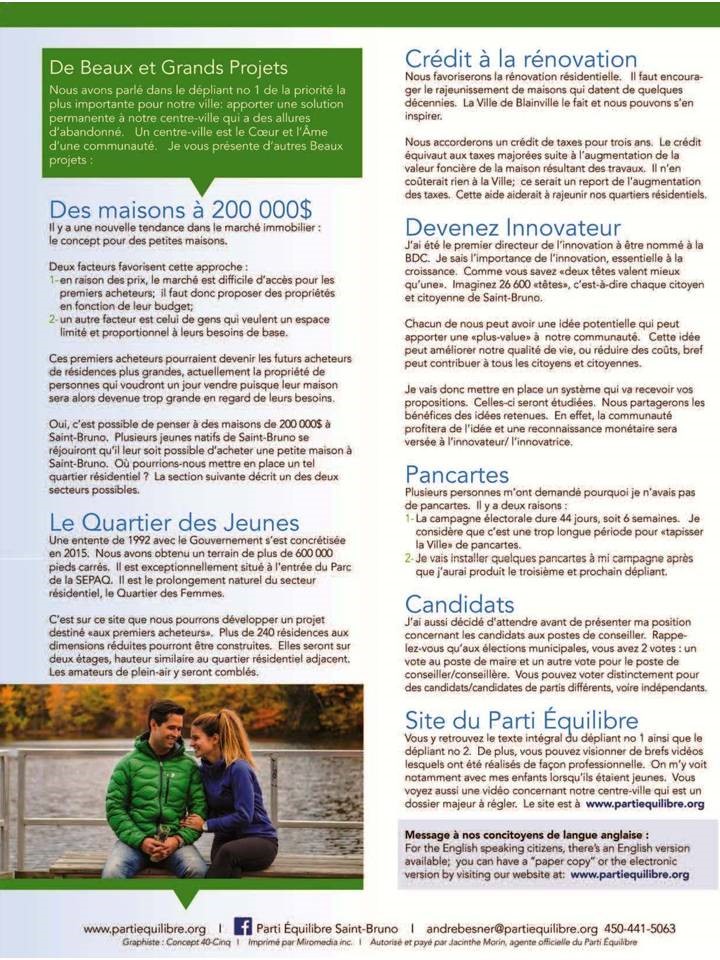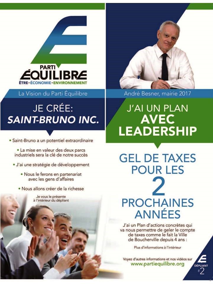 En vue des élections du 5 novembre 2017, le Parti Équilibre propose un programme stimulant d'engagements réalistes répondant aux besoins courants et aux aspirations de l'avenir. Ceci en trois volets : dépliant no. 1, 2 et 3. Dont le dépliant no. 2 ci-dessous.